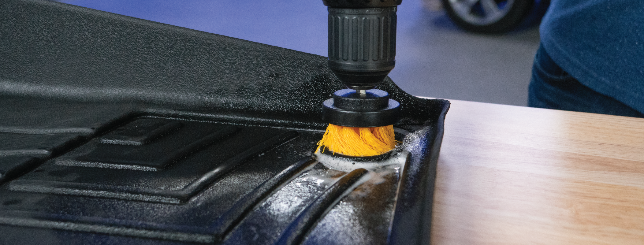 Watch as the Drill Powered Cleaning Brushes loosen and lift dirt from carpeted footwell mats, bedliners, and rubber floor mats. Get the job done in less time than manual cleaning options.