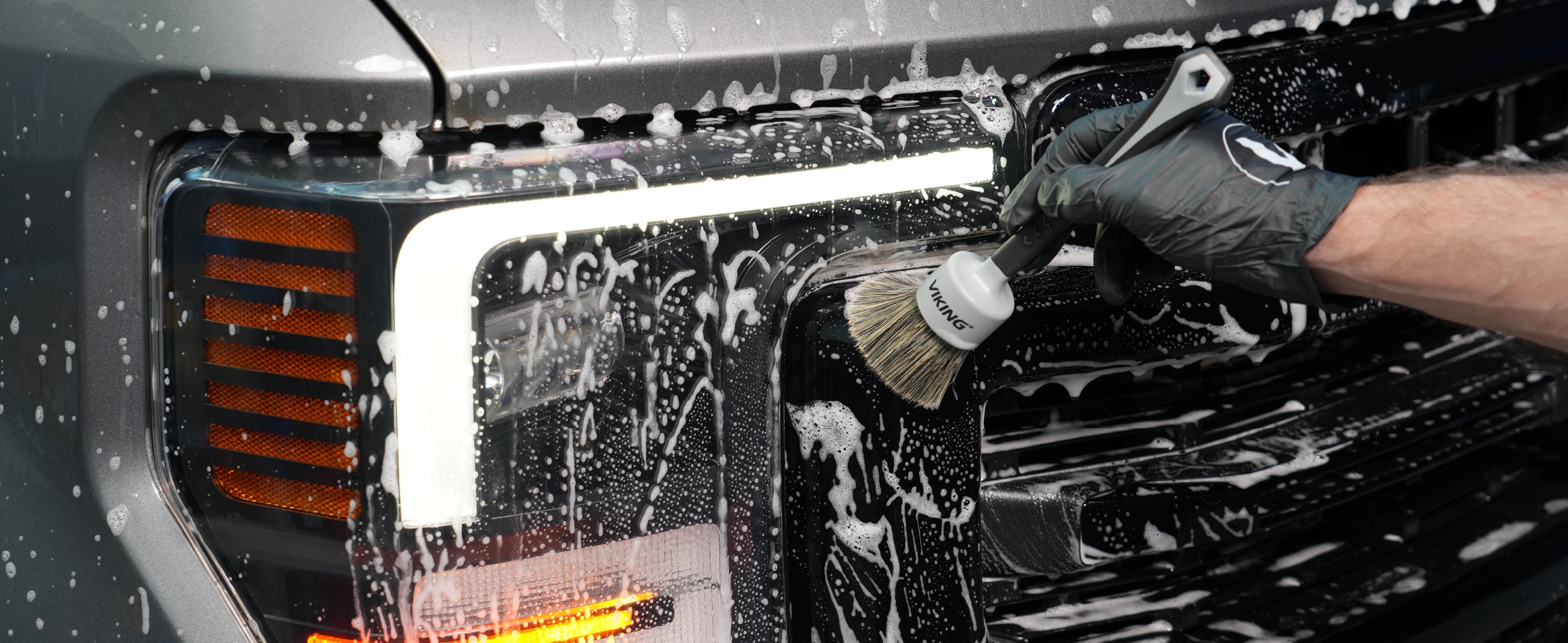 The VIKING Exterior Detail Brushes feature 2 unique brush diameters: 1.5 inch for larger areas and 1 inch for smaller intricate spaces to achieve professional results at home. The premium blend of boar hair and synthetic bristles gently scrub exterior surfaces like wheels, headlights, grills, fuel doors, under the hood, and more. Ergonomically designed, the handle is coated with a soft rubber over molding for a comfortable hold.