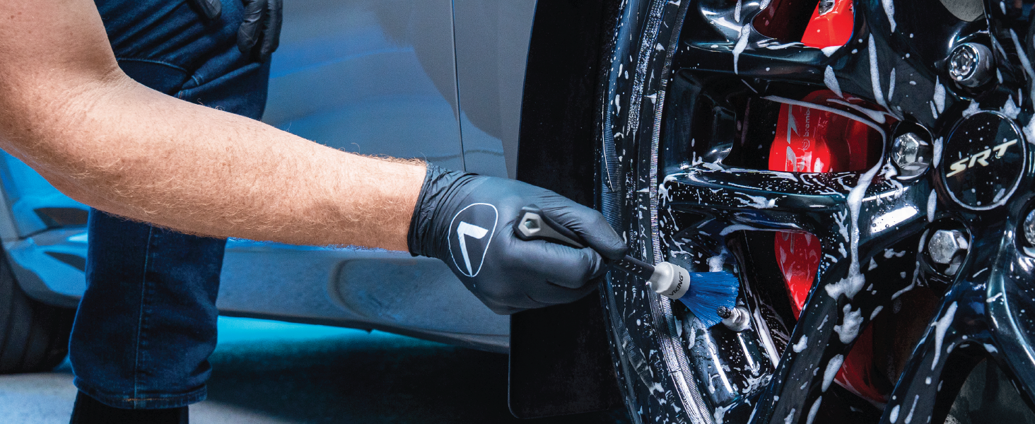 The VIKING Lug Nut Brush is designed for cleaning lug nuts and other intricate wheel details. The brush head is packed with ultra-soft bristles which gently and safely loosen dirt, grime, and brake dust from lug nuts, lug nut wells, and more.