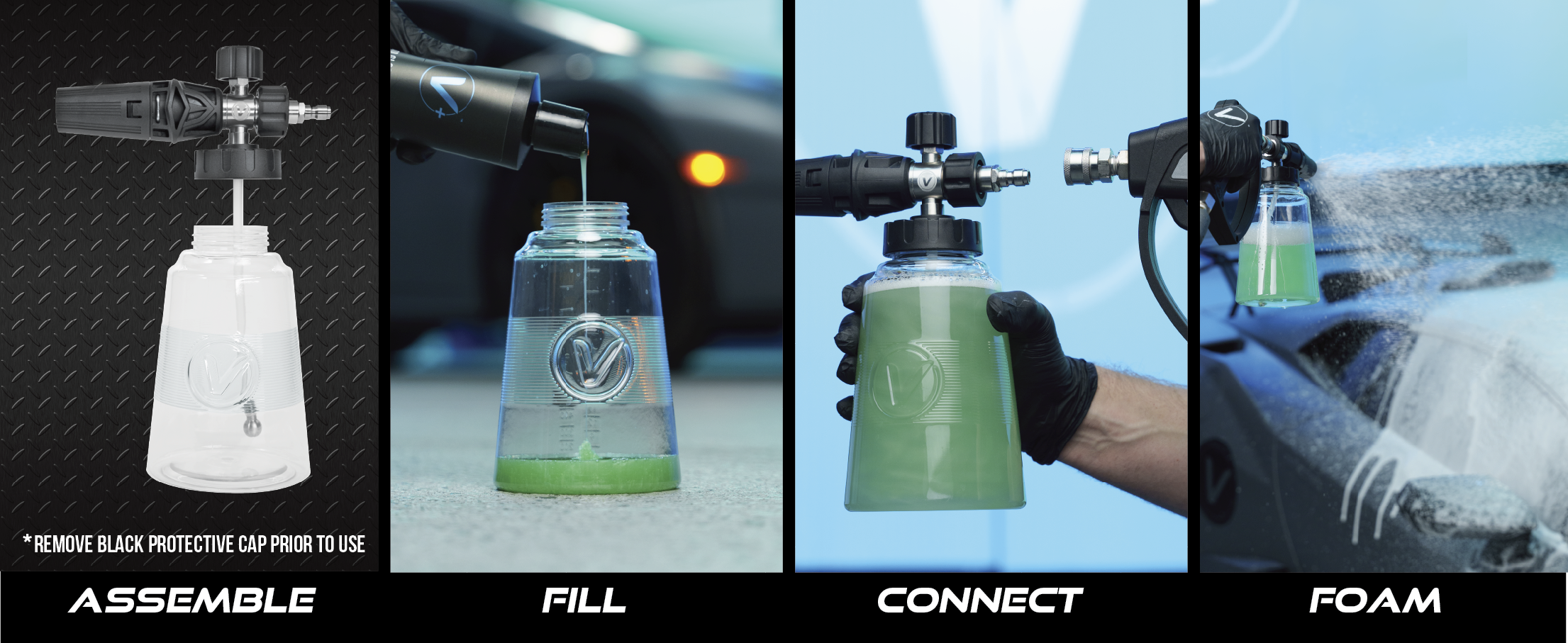 The VIKING Foam Cannon is designed to take your car care to the next level. The adjustable nozzle and high-capacity canister paired with high-pressure water flow, air, and your favorite liquid car wash will produce rich, thick, sudsy foam for a complete clean. The Foam Cannon must be used with a pressure washer, not a garden hose.