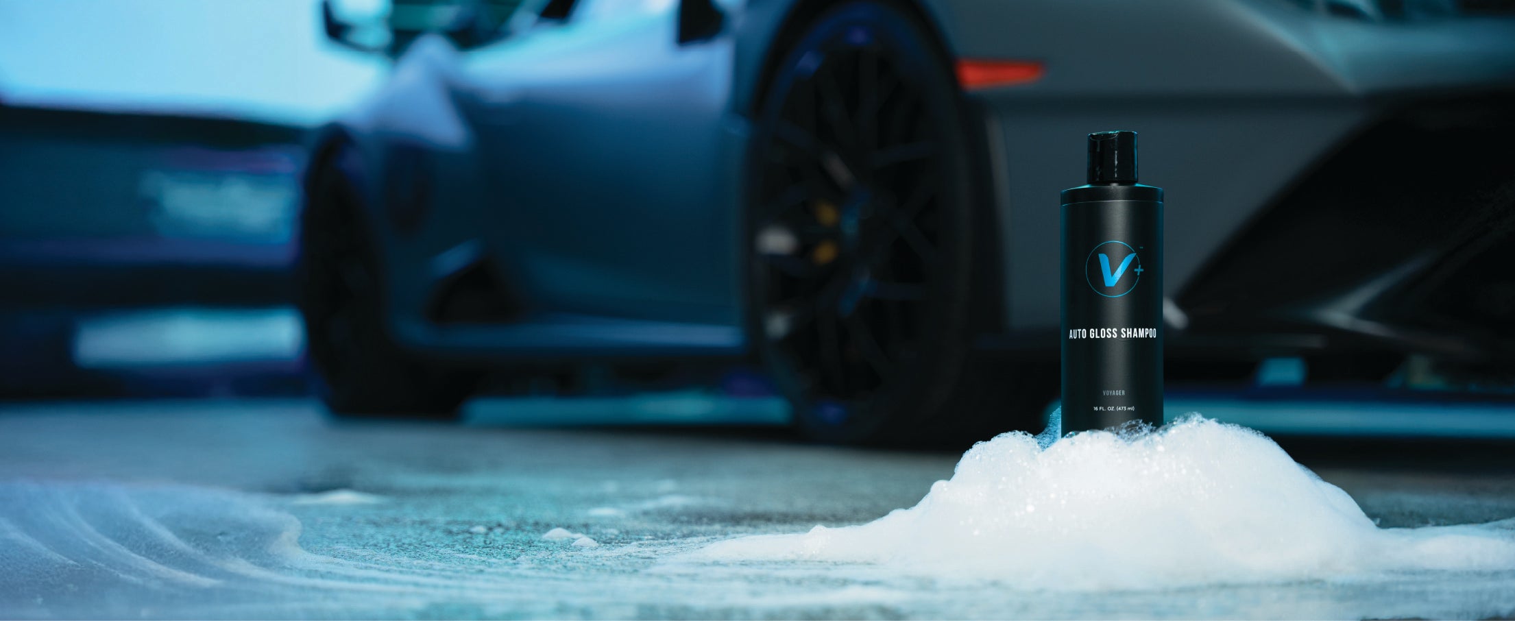 This bottle of V+ by VIKING Auto Gloss Shampoo is infused with exquisite aromas of citrus, bergamot, and oak moss to captivate the senses and elevate every car wash. Highly concentrated and pH-balanced, this premium formulation of car wash soap has been developed with leading chemists from the automotive industry to create thick, cleansing suds with exceptional lubrication. Use the Auto Gloss Shampoo with a foam cannon or a traditional bucket wash.