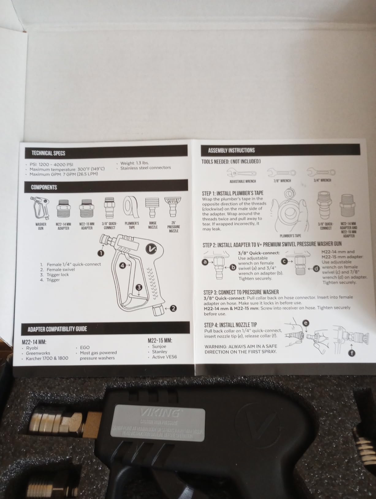 The V+ Premium Swivel Pressure Washer Gun is designed to take your car care to the next level. The small body pressure washer gun has been engineered for performance and precision for use with a pressure washer, power washer, or foam cannon. A 360° swivel inlet eliminates hose tangles, and the ergonomic handle minimizes hand fatigue making this pressure washer gun the perfect addition to any car cleaning kit.